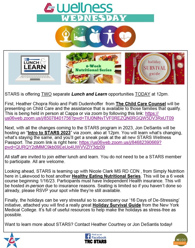 Wellness Wednesday – Volume 9 – Week 47 Image November 22, 2023November 30, 2023The Resource CenterLeave a comment